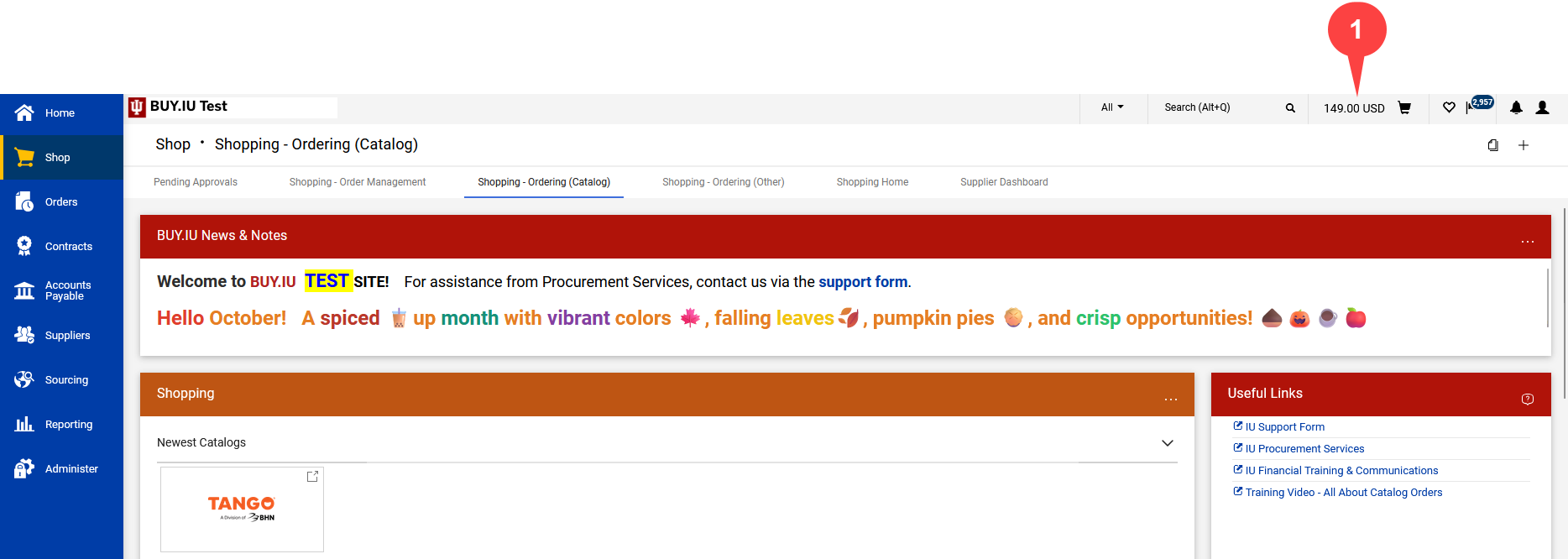 Step 1: If you aren’t already in the shopping cart, click the Shopping Cart in the top navigation menu to navigate to it.
