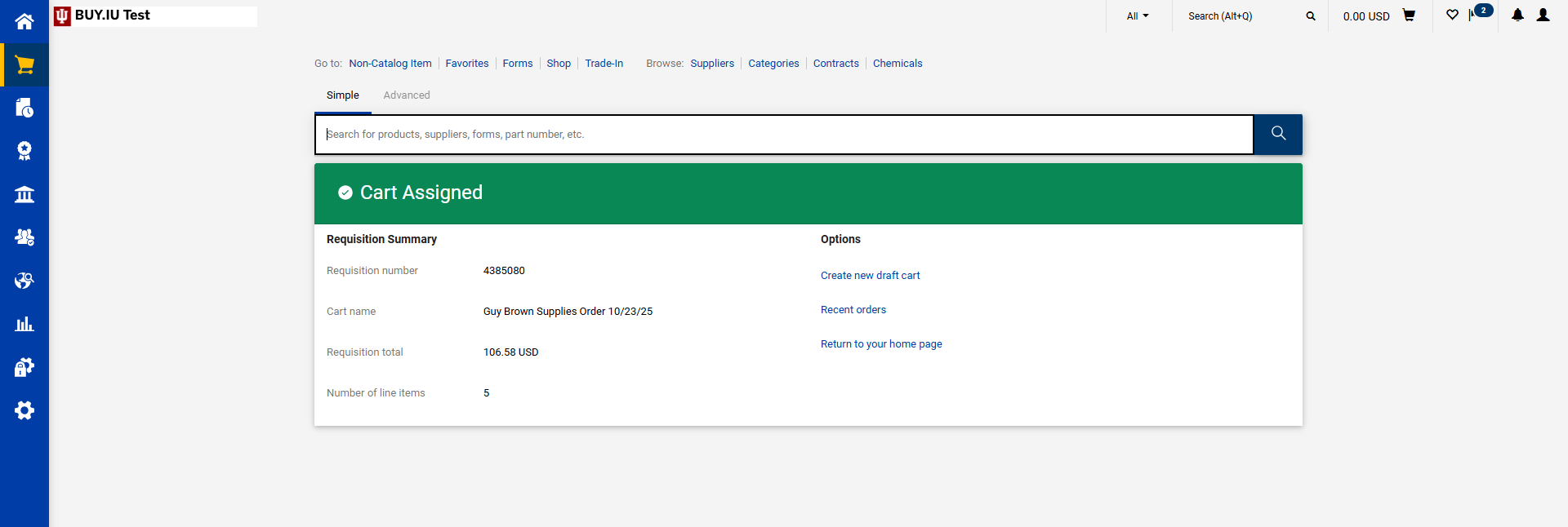 BUY.IU assigns the cart to the user you specified. The page refreshes and displays a confirmation message.
